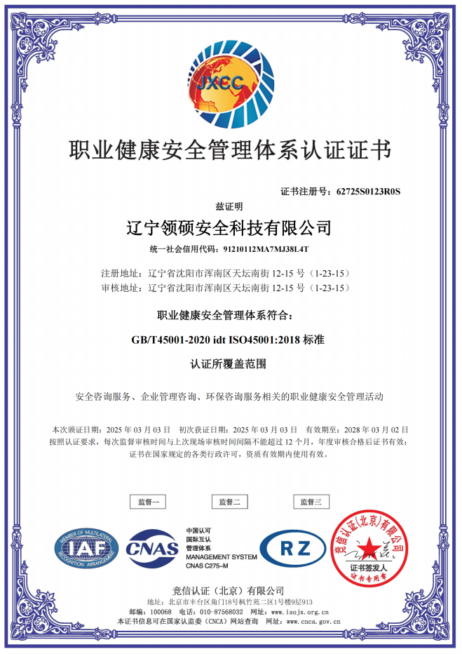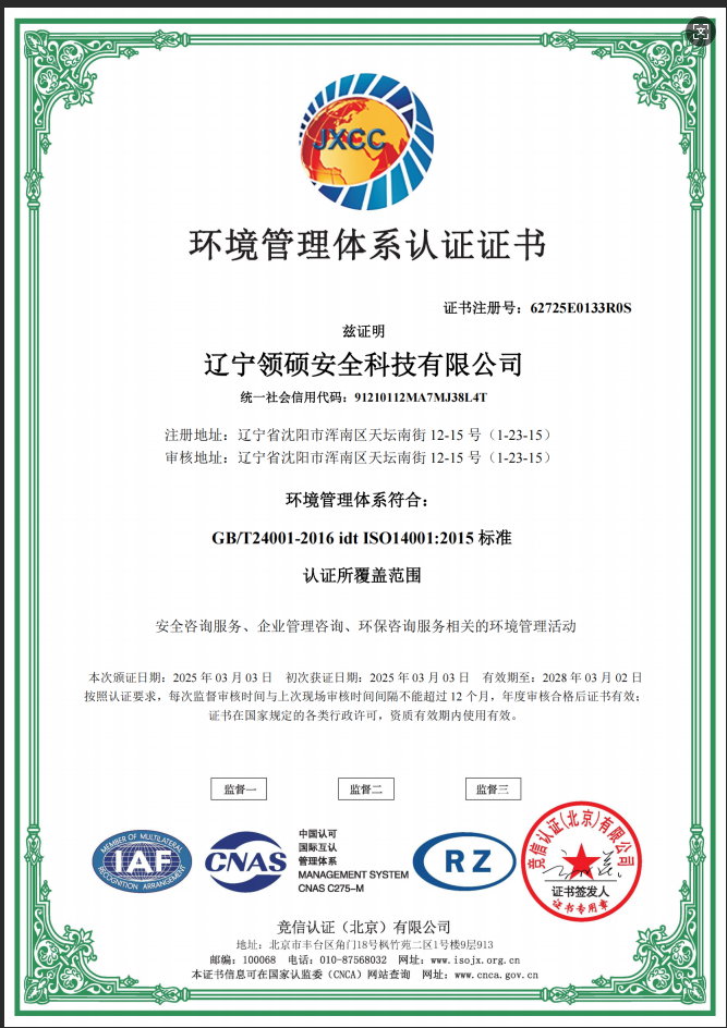 遼寧領(lǐng)碩安全科技有限公司位于遼寧省沈陽市渾南區(qū)天壇南街12-15號(hào),注冊資金300萬。主要經(jīng)營范圍為遼寧省范圍內(nèi)的安全環(huán)保咨詢,生產(chǎn)安全事故應(yīng)急預(yù)案技術(shù)服務(wù)、企業(yè)雙重預(yù)防機(jī)制建立、履職能力評(píng)估、企業(yè)科研項(xiàng)目安全部分服務(wù)等的技術(shù)服務(wù)機(jī)構(gòu)。現(xiàn)有員工12人,其中包括5名遼寧省級(jí)安全生產(chǎn)專家。成立于2022年4月18日,在盤錦市成立至今已經(jīng)為30余家企業(yè)提供了安全環(huán)保技術(shù)咨詢。 業(yè)務(wù)范圍包括:技術(shù)服務(wù)、技術(shù)開發(fā)、技術(shù)咨詢、技術(shù)交流、技術(shù)轉(zhuǎn)讓、技術(shù)推廣,安全咨詢服務(wù),環(huán)保咨詢服務(wù),標(biāo)準(zhǔn)化服務(wù),企業(yè)管理咨詢,科技中介服務(wù),工程管理服務(wù),特種作業(yè)...查看更多